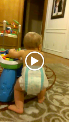 Two months. That's all we have left until our little man has been with us for a year! Can't believe it!! He's DOUBLE DIGITS! Our sweetheart is growing more and more every day. This month especially has been tons of fun. Samuel just started babbling ("bwah-bwah or buh-buh") a few days before he turned 10 months old! It's the cutest thing!! Some of Samuel's favorite activities these days include dancing when he hears music, crawling after Caleb, standing at his activity table and playing the music, unloading anything and everything (toys, cabinets, etc.), tearing (and occasionally eating) paper, crawling behind the recliner and looking out the window, and waiting for the dishwasher to open so he can try to play inside. He also has a few things that he can do when we ask him to now - touch his hair, look for the fan, "rock the boat" (rock back and forth in his high chair), stick out his tongue (sometimes), and turn out the lights/fan.